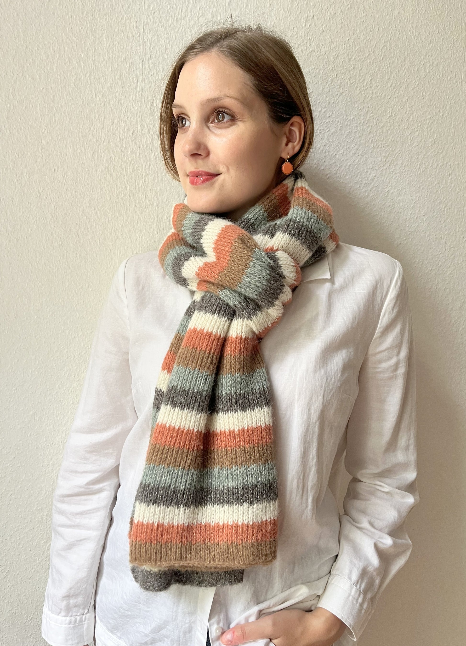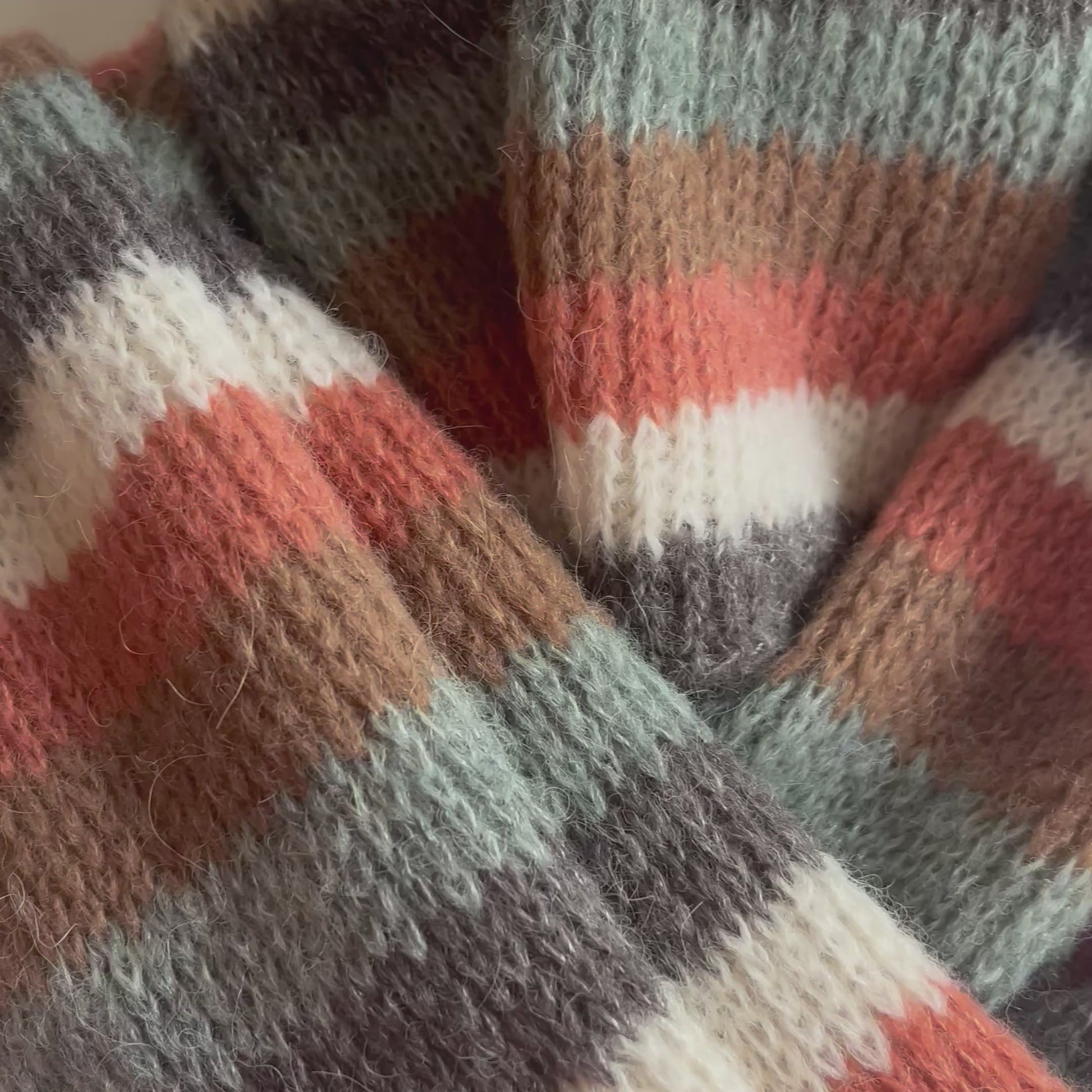 Gestreifter Alpakaschal Damen in braun, salbeigrün und grau - weich und handgefertigt