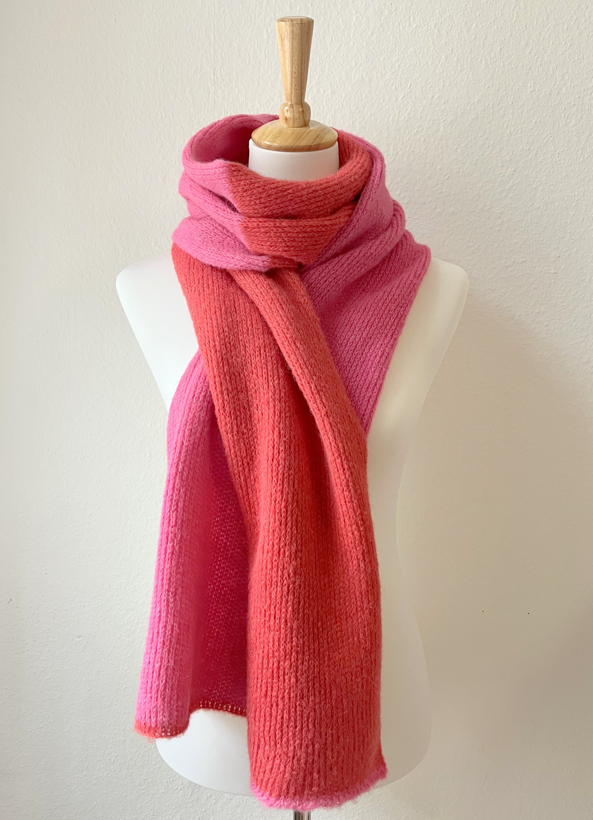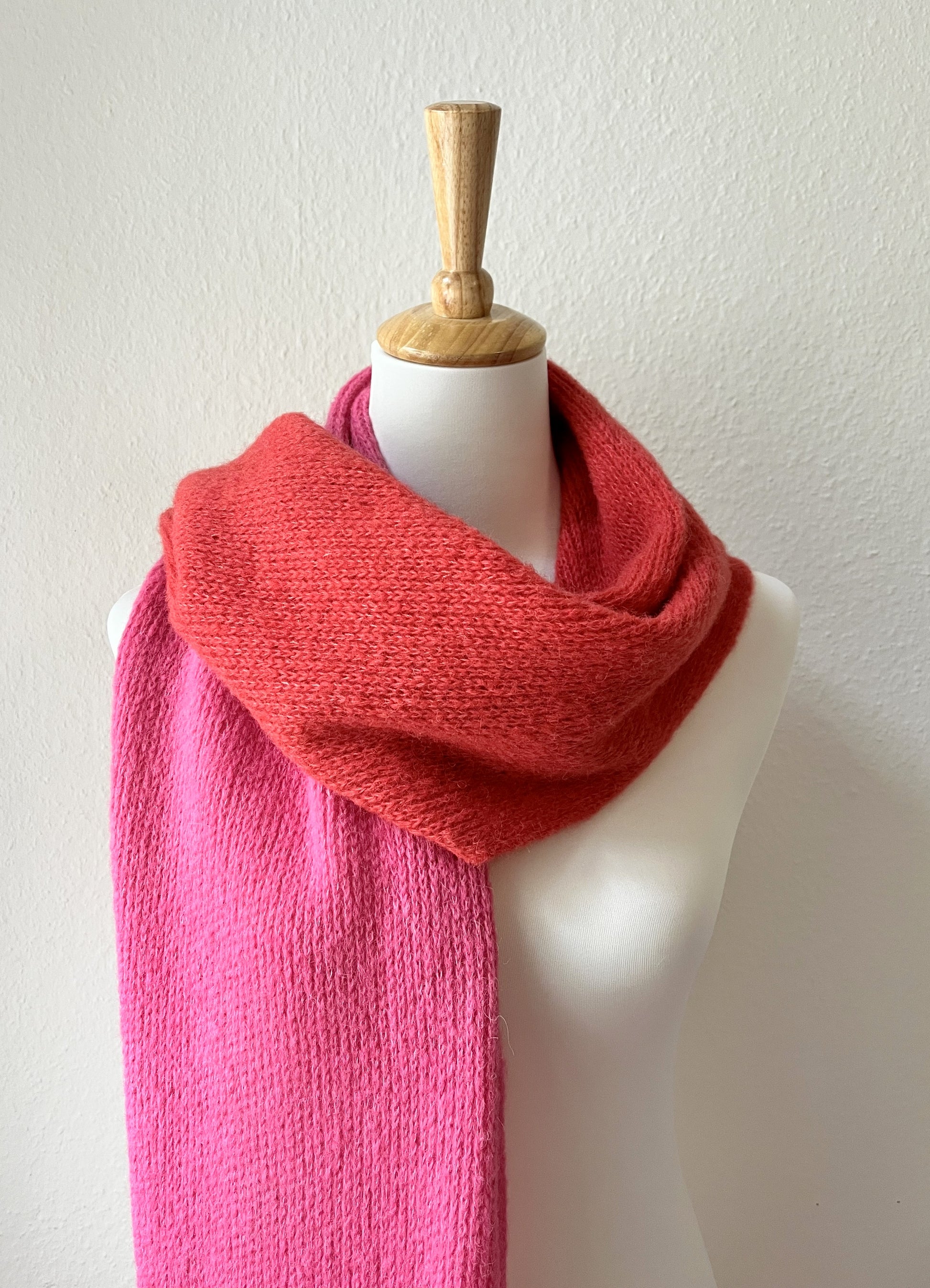 Alpaka Schal Damen zweifarbig in Koralle & Pink – weich & handgefertigt