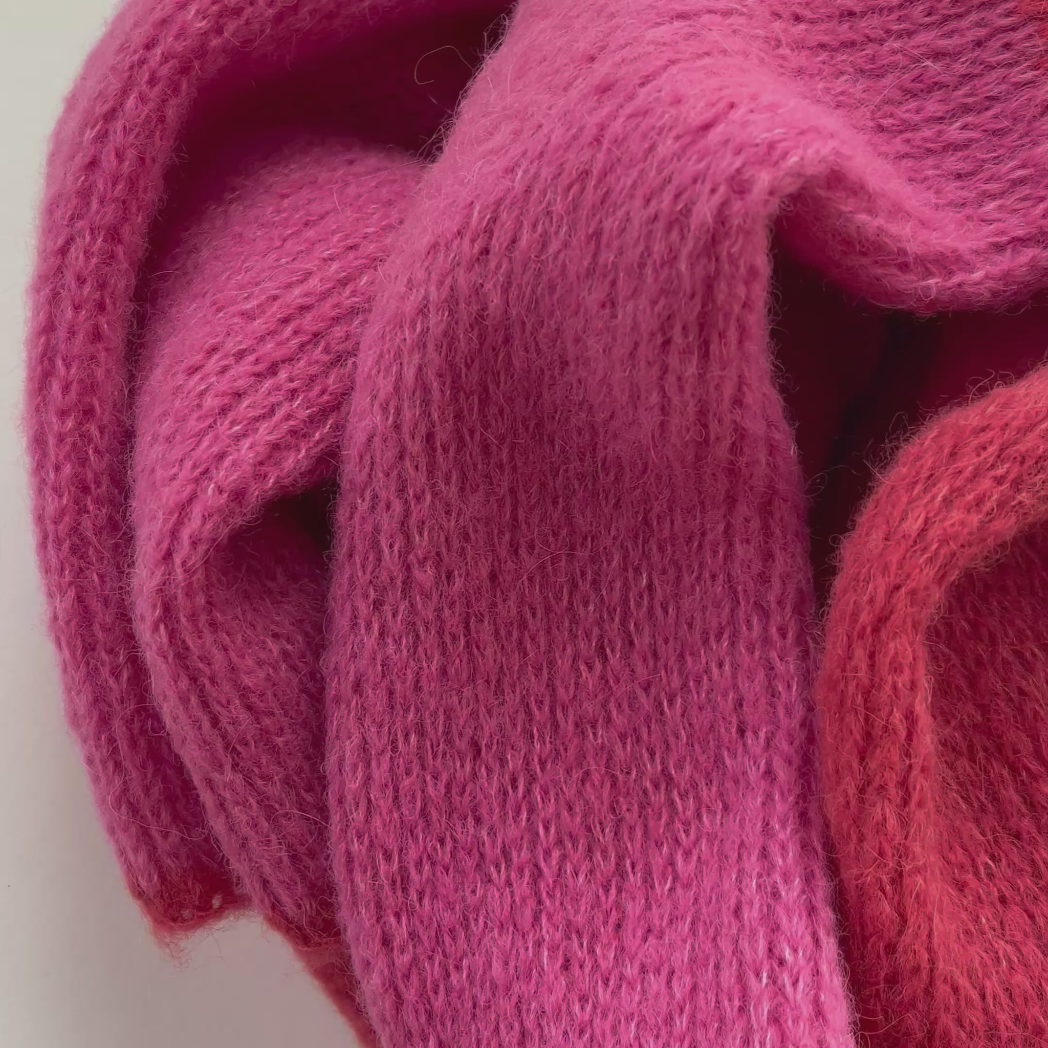Dieser handgefertigte zweifarbige Alpaka Schal on Koralle & pink vereint hochwertige Naturmaterialien mit zeitlosem Design. Gefertigt in unserem Atelier mit der Strickmaschine und sorgfältig von Hand verarbeitet, entsteht ein besonders gleichmäßiges und langlebiges Strickbild.