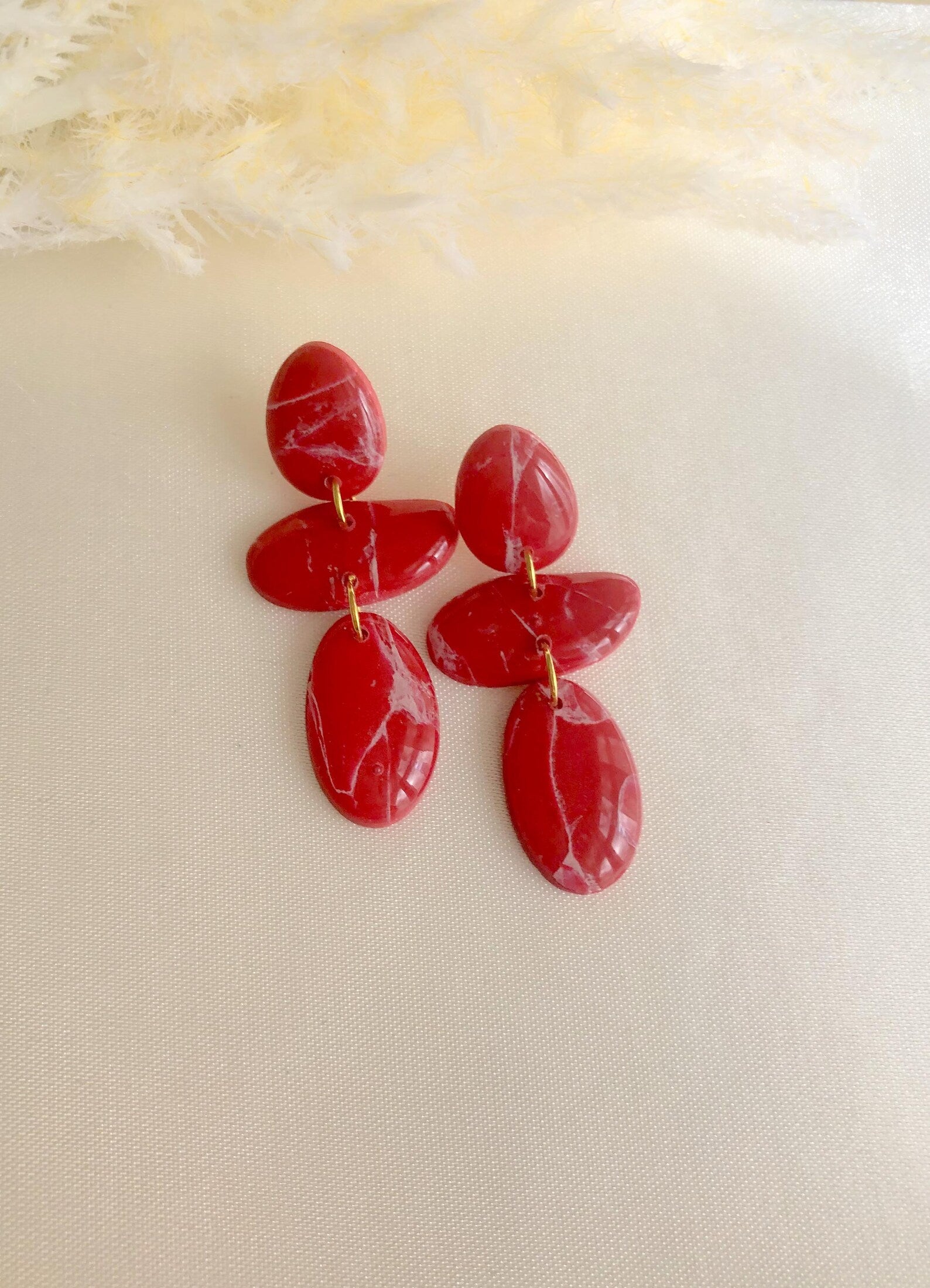 Polymerton Ohrringe Kieseltrio marmoriert rot